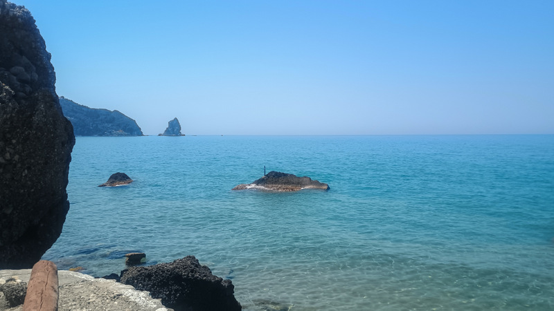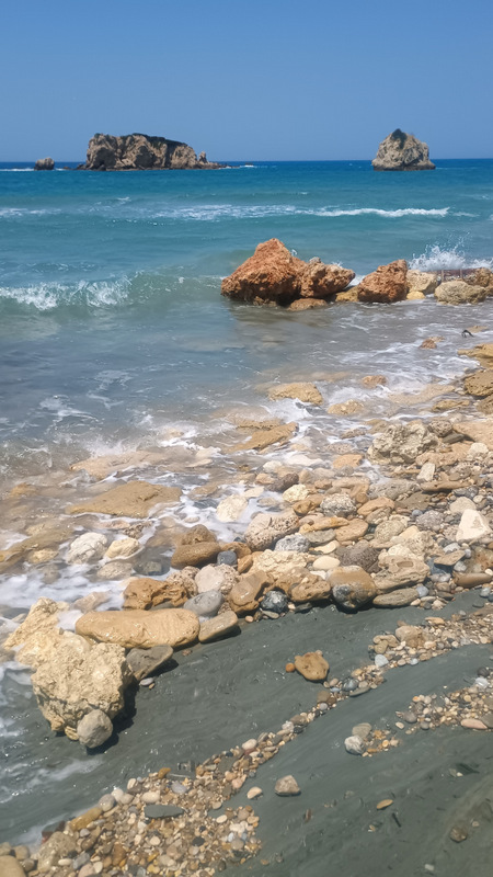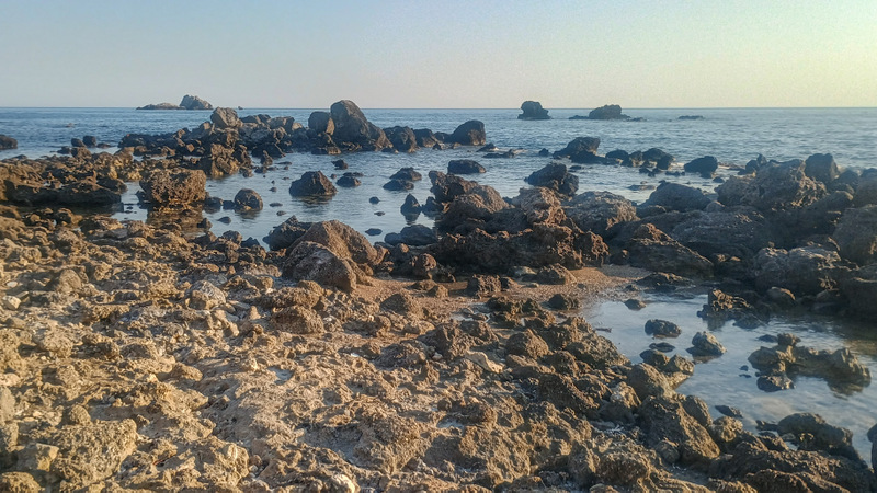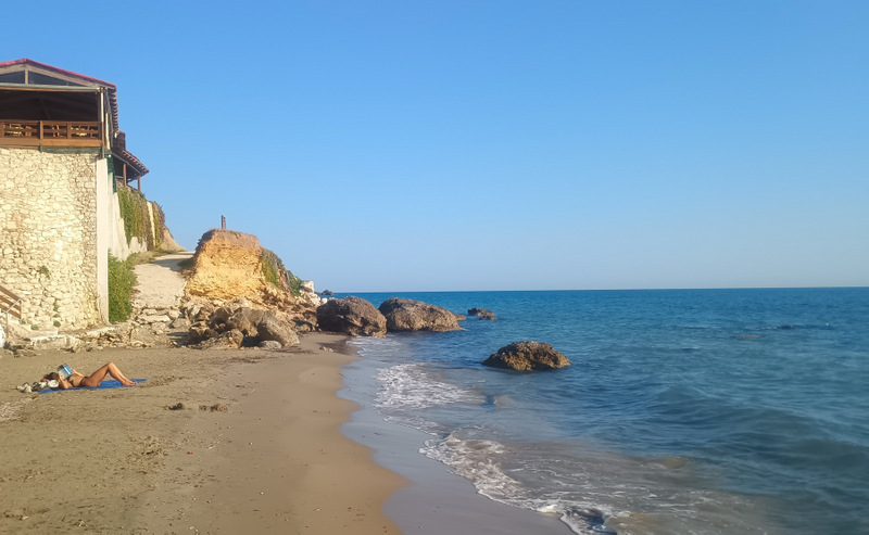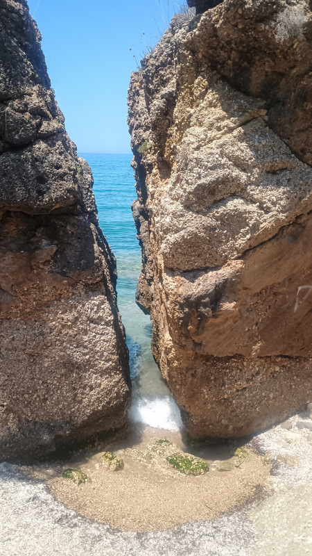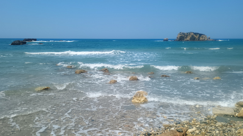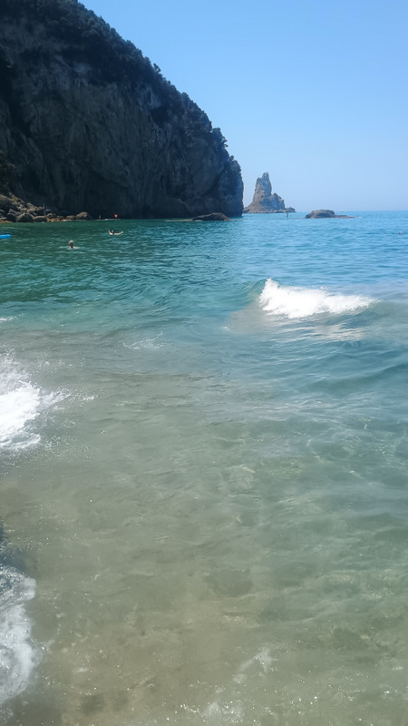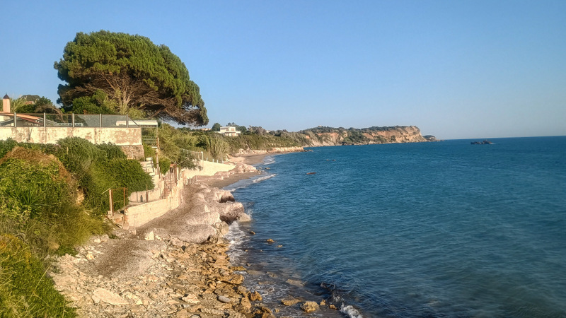 În cîteva minute suntem pe plajă și facem binemeritata baie. Mergem apoi pe jos pînă la capătul opus al plajei, unde sunt cîteva terase și un mic port. Deasupra portului este o parcare gratuită și cu multe locuri. Aici trebuia să ajungem. Totuși plimbarea ne-a adus în fața ochilor peisaje frumoase cu valuri, stînci și o plajă sălbatică aflată la mică distanță dar accesibilă doar pe apă.