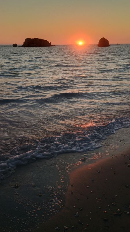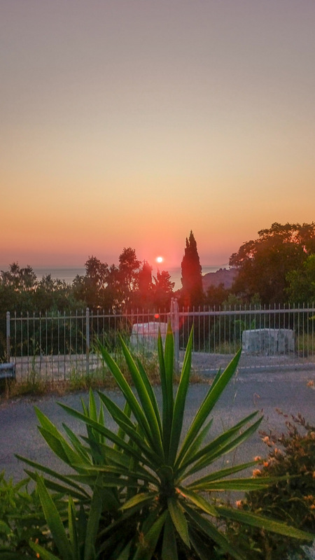 Revenim la balconaș. Soarele coboară încet-încet spre mare. Peisajul e fabulos și te lasă fără prea multe cuvinte. Soarele pare că atinge apa și apoi pare că se scufundă treptat în ea. Lumina își pierde din intensitate. Ultima rază dispare și ea în mare. Nu e încă chiar noapte și poate și de aceea nu prea ne vine să plecăm. Dar trebuie.