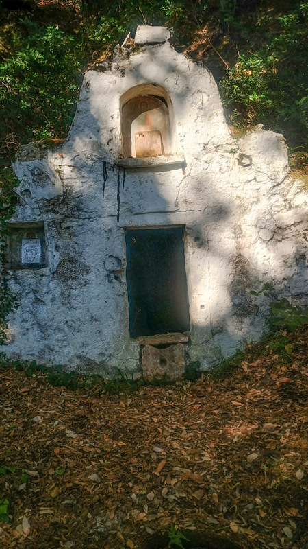 Izvorul se dovedește a fi secat. A fost amenajat în interiorul unei mici capele. De aici ne așteaptă o urcare mai abruptă care la final ne duce în poteca principală. Mai urcăm un pic și ajungem în vârf, în vecinătatea mănăstirii Pantokrator. Este organizată ca o cetate, dar are porțile ferecate.