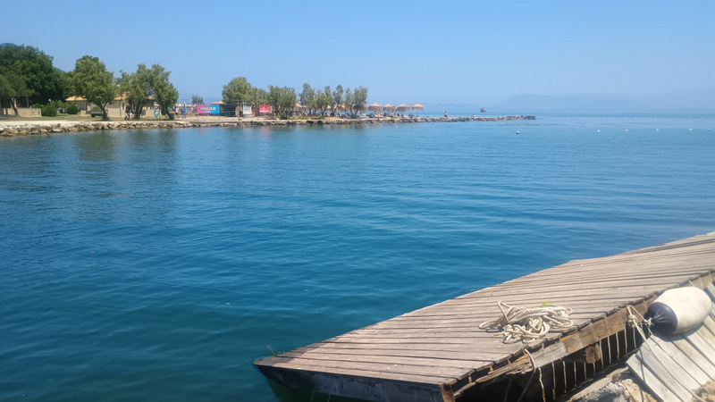 Continuăm drumul mergînd din ce în ce mai încet. Ne apropiem de Insula Șoricelului, Mănăstirea Vlacherna și aeroport. La fel ca data trecută lăsăm mașina într-o mică parcare de pe marginea drumului. Luăm cu noi apă și pornim pe jos, coborînd lîngă apă.