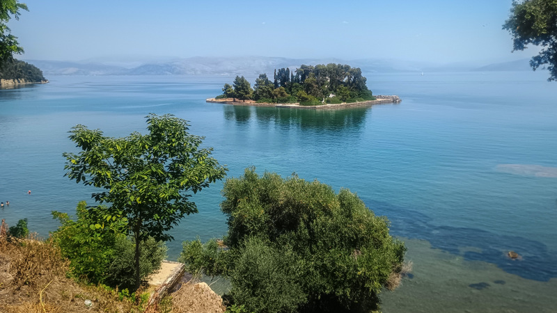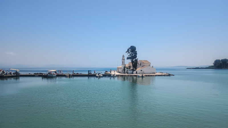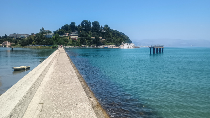 La Insula Șoricelului, Ponticonissi, nu mai mergem. Am fost data trecută, nu mi s-a părut interesantă. Este mai spectaculoasă cînd o privești de sus, de pe șosea. Pe insula Șoricelului există, după cum era de așteptat, o biserică ascunsă între copaci. Deşi nu seamănă deloc cu un şoarece, localnicii spun că porecla îi provine de la scările albe care duc spre capela din vârful dealului şi care seamănă cu o coadă de şoarece.