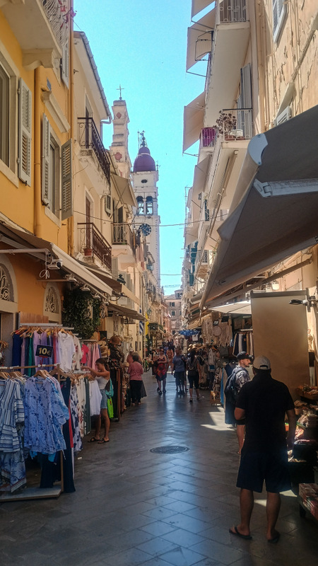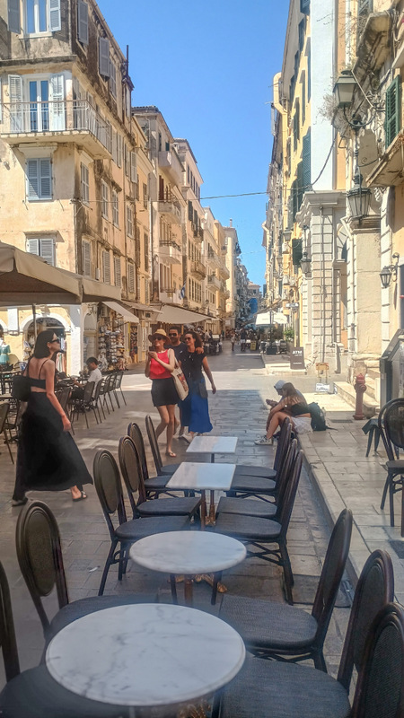 Am luat la pas fermecătorul oraș Kerkyra. Străzile orașului, cu clădiri înalte cu balcoane din fier forjat și cu obloane la ferestre, seamănă cu străzile din orașele italiene tipice. Pe mine gîndul m-a dus imediat la Venezia.