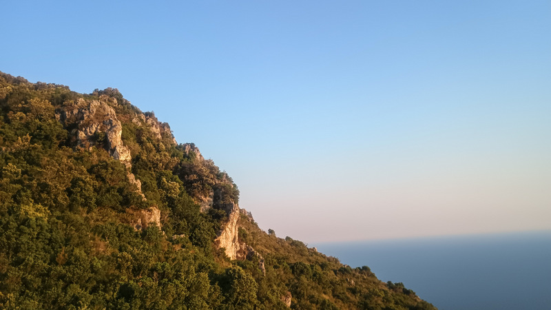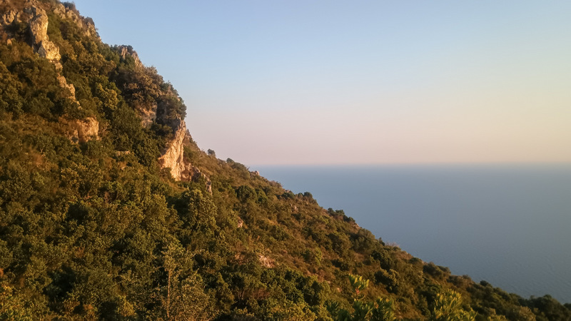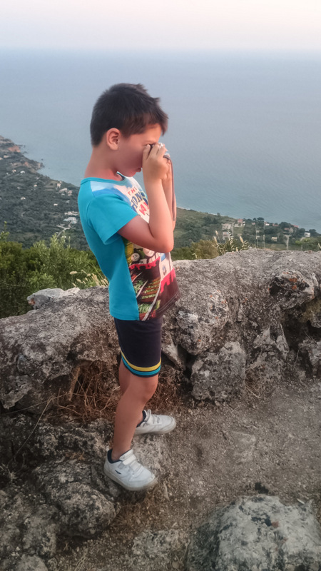 Eu mă duc pe celălalt traseu. Nu ar trebui să fie lung. Poteca e și mai îngustă dar și mai înțepătoare. E plin de tot felul de arbuști de tufișuri și zici că fiecare și-a propus să-mi lase o amintire pe corp. Ies din pădure și observ un pic mai bine locul unde mă aflu. Sunt pe o creastă sub vîrful ci crucea. Poteca mă duce la două puncte de belvedere asupra mării. Peștera nu o găsesc. Mai merg puțin dar poteca se înfundă pur și simplu. Nu se mai poate înainta. Așadar fac cale întoarsă. Drumul la vale merge repede. Cînd ajung eu copiii abia se treziseră.