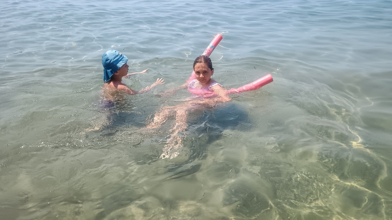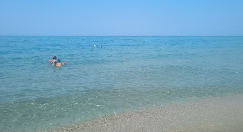 Ne punem în mașină și în cîteva minute ajungem la un sătuc cu puține case. Două taverne, o plajă cu pietre și multă liniște este tot ce găsești aici. Am prins mare puțin agitată, cu valuri micuțe. Copiii s-au amuzat, a fost o alegere foarte bună.