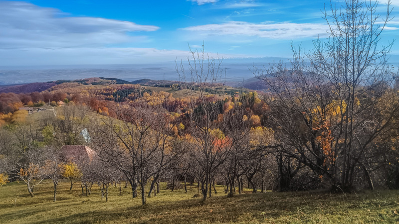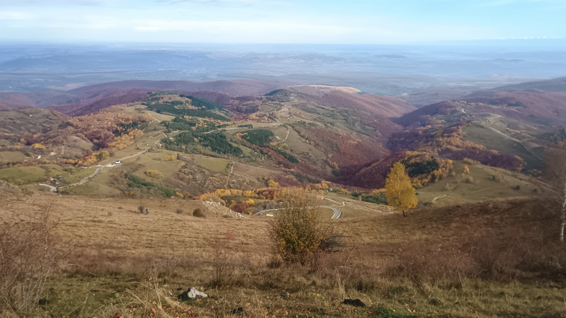 La început drumul ne duce printr-o Pădure Sloboda, apoi începe să urce susținut pe niște serpentine scurte. Cîștigăm altitudine rapid și ieșim într-o zonă deschisă. Peisajul e fain și oprim într-o parcare să observăm mai bine.