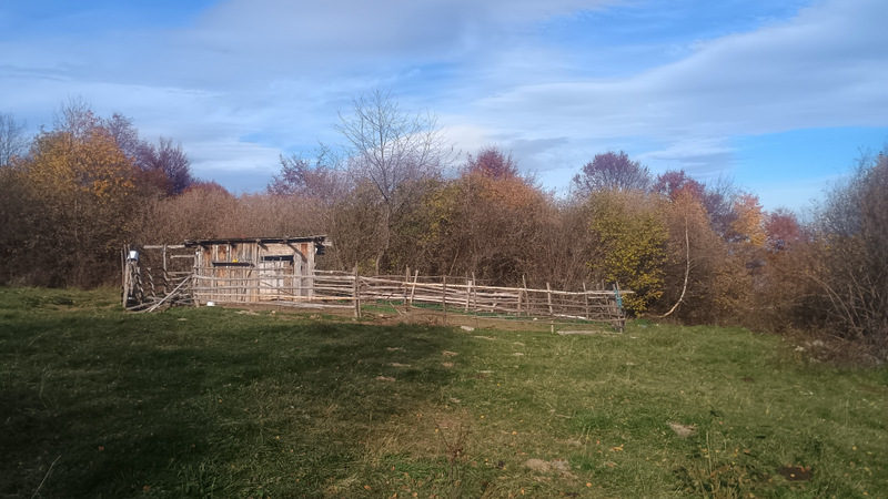 Ne luăm rămas bun și începem un urcuș abrupt și consistent. Treaba merge excelent, intrăm îm pădure. La capătul proprietății se află o poartă cu un sistem ingenios de auto-închidere. De aici se mai calmează panta, urcăm ușor pînă în apropierea unui adăpost pentru animale aflat într-o poiană cu lapiezuri.