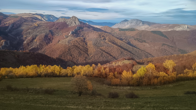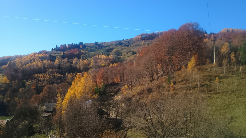 Ne aflăm undeva deasupra Cheilor Rîmețului, iar peisajul este extraordinar. Decidem pe loc că e cam păcat doar să mergi cu mașina pe drumul ăsta. Trebuie să găsim un traseu care să poată fi parcurs și pe jos. În plus este o perioadă foarte frumoasă în care culorile de toamnă sunt încă la putere.