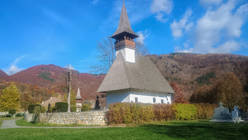 Următoarea oprire este la Mănăstirea Înălțarea Sfintei Cruci aflat în satul Mănăstire. Locul acesta este un pic mai animat. Și foarte frumos îngrijit. O adevărată oază de liniște. În curtea mare există două biserici. Cea veche, mai mică și mai îndepărtată de poartă, este în renovare dar cu toate astea are un farmec aparte. Am avut noroc că un călugăr care lucra ne-a văzut și ne-a invitat să o vedem. Nu se poate intra decît în partea din spate.