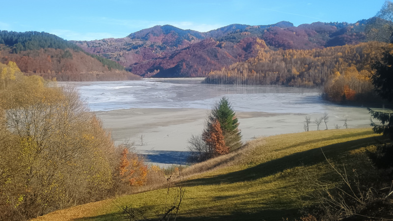Revenim la mașină, consultăm ceasul și vedeam că ar fi timp să mergem și la baraj. În 2012 nu am ajuns acolo, atunci am mers pînă în coada lacului, la Vința. Ceea ce și facem. Drumul pînă acolo oferă cîteva locuri de belvedere, apoi se coboară pe un drum abrupt pînă pe baraj.