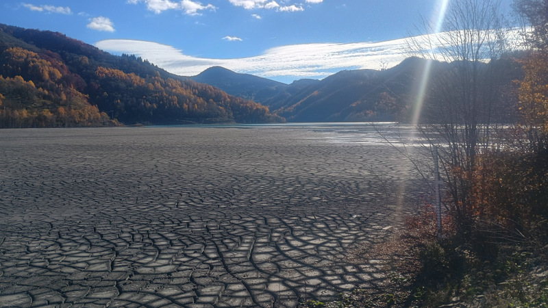 Alegem să mergem spre biserică. Undeva putem vedea pe viu cum tulbureala de steril este deversată pe un anume sector al lacului. De acolo mai mergem o bucată dar nu prea mult. Drumul este blocat de niște arbori căzuți sau tăiați, nu mi-e clar. O echipă de muncitori lucrează la degajarea lui.