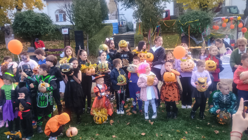 Evident se lasă cu dans, paradă de costume și concurs de sculptat dovleci. George al nostru se descurcă foarte bine și cîștigă, cu dovleacul său locul trei. Avem festivitate, poze cu primarul, toate cele. Dar și mai interesant este ceea ce a cîștigat: o excursie la cluj și o lună de intrare gratuită la Ștrandul din Baia de Arieș!