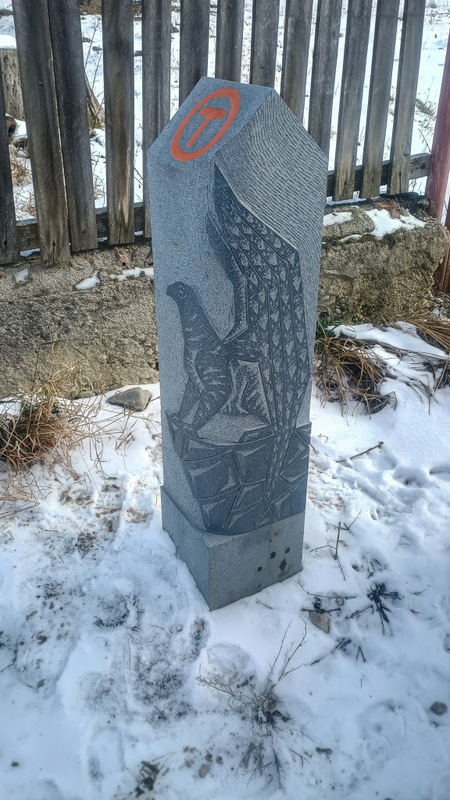 Drumul ne duce apoi în vecinătatea unei gospodării unde oamenii taie lemne. Suntem luați în primire de doi cîini. Unul mic și arțăgos. Celălalt era mare și din fericire era legat de o remorcă. Nu mi-ar fi plăcut să dau de el liber.
