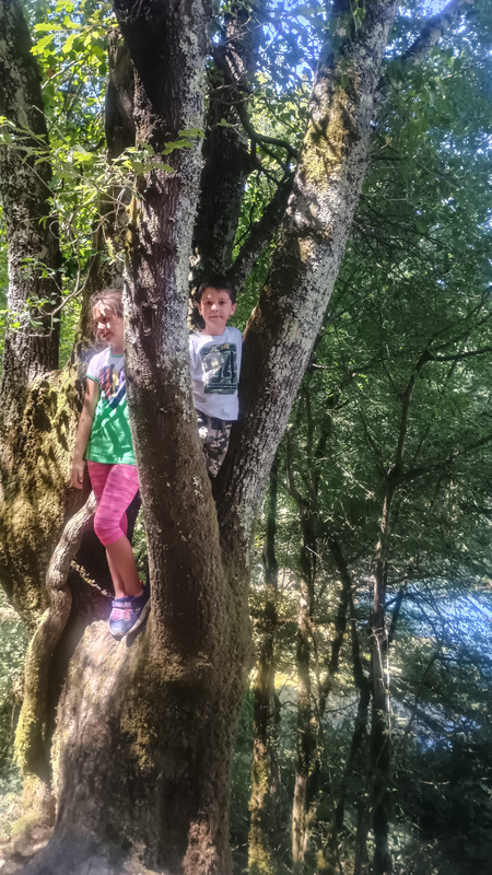 Tura se putea termina aici doar că..Ai mei copii și-au mai dorit o tură cu trenulețul. Așadar o luăm înapoi pe potecă prin pădure. E atît de frumos, e lume foarte puțină în contrast cu ceea ce este la Ochiul Albastru. Așadar ne mai bucurăm încă odată de punctele de belvedere, de Ochiul Albastru unde iar avem bafta să prindem balconul liber.