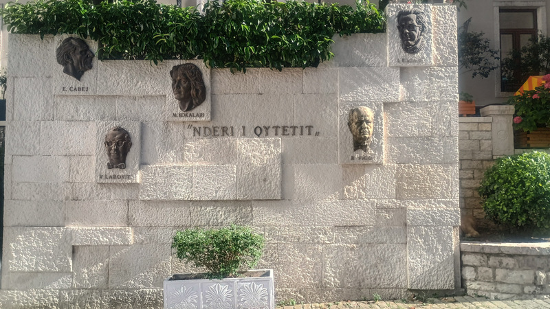La final mai facem o plimbare pe străduțele strâmte și în pantă. Descoperim un loc larg, Piața Sheshi Çerçiz Topulli. Impresionează aici un soi de mozaic făcut din plăci asemănătoare cu gresia.
