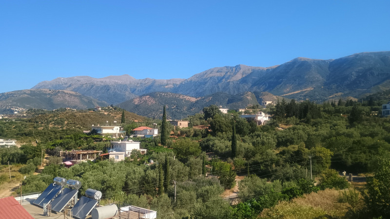 Studiem un pic traseele. Cel mai facil este cel care urcă pe un drum pînă într-o zonă înaltă unde sunt antene. Un altul te urcă în 3-4 ore pe vîrful Maia e Cikes. Chiar și la 1000 de metri e foarte cald. Sincer mi-ar fi plăcut să urc și pe munte dar nu în condițiile acestea.