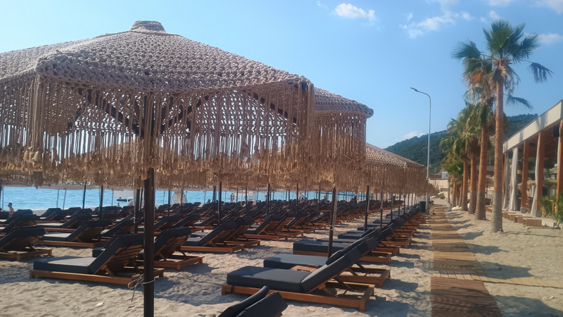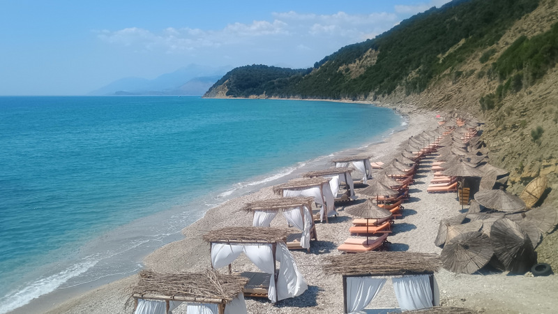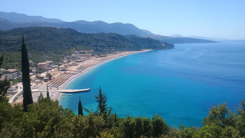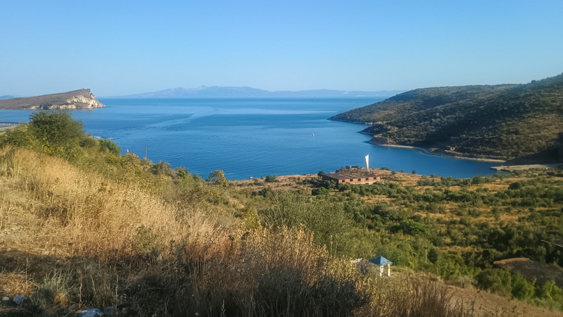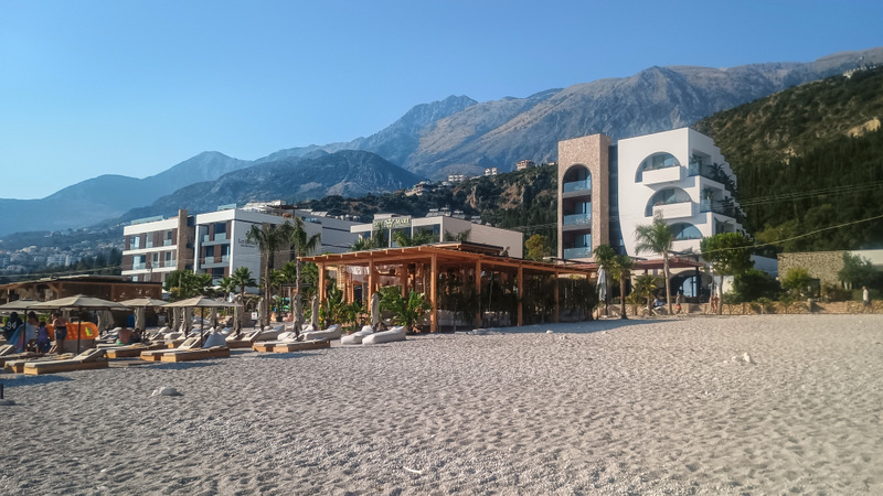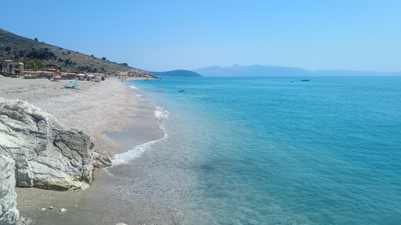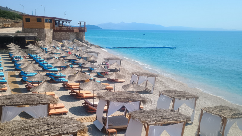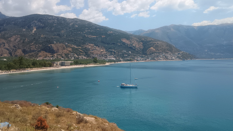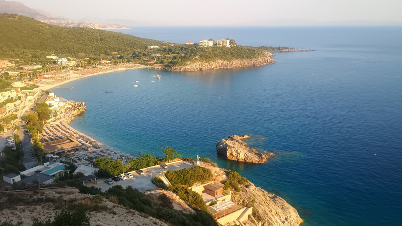 În ziua următoare ne trezim cu chef de plajă și de apă. Oriunde altundeva e aiurea. Priveliștea de pe balcon este copleșitoare: într-o parte marea, cu golful unde e situat orașul Himarë, pe cealaltă parte e un munte înalt numit Bagonica.