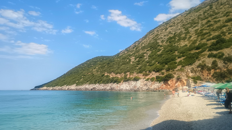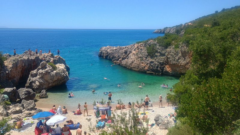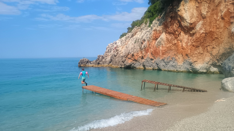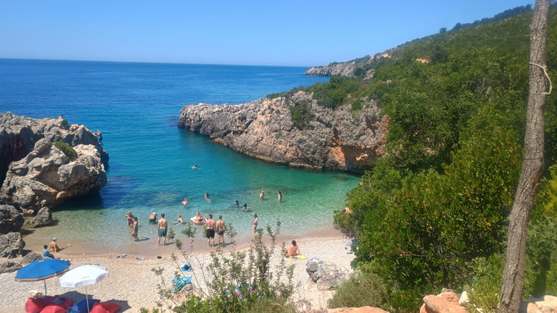 Așadar facem de dimineață bagajele și ne gîndim să facem o baie pe drum și abia apoi să ne îndreptăm spre locul de cazare. Pornim pe superba rivieră albaneză cu drumurile sale cu urcări și coborîșuri.