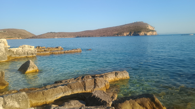 În fine, ajungem în zona cu castelul. Din păcate îl găsim închis. Poate fi vizitat dar..nu e mare lucru de văzut acolo. La intrarea în istm se găsesc, de o parte și de alta, două plaje. Una cu nisip și ape faine. Cealaltă cu stînci ce formează mici bazine. Și cu apă la fel de faină. Evident le-am încercat pe amîndouă.