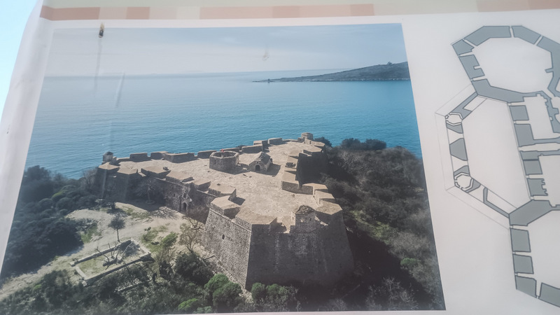 Zona este drăguță liniștită, fără amenajări. Am fost și la castel, am dat o tură în jurul lui. Un panou informativ aduce cîteva informații interesante. Castelul a fost construit la începutul secolului 19 pe o insulă de către Ali Pasha Tepelena. Insula a fost apoi unită cu țărmul deversîndu-se în mare cantități apreciabile de bolovani.