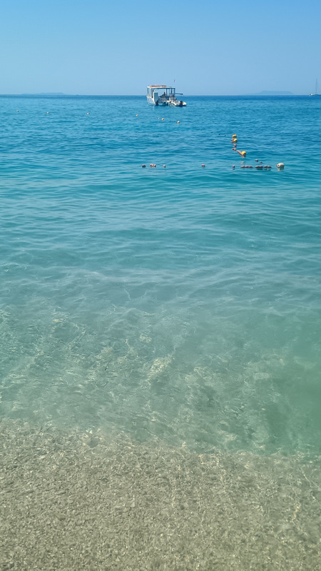Cu ocazia asta mă duc și la plaja Guma, aflată la 2 minute de mers pe jos. Și aici e apă din aia faină însă plaja e mai pietroasă și mai liberă. Există și aici un mic bar. Pe drumul de lîngă plajă în schimb e foarte multă mizerie. Testez un pic apa, e la fel de frumos și aici.