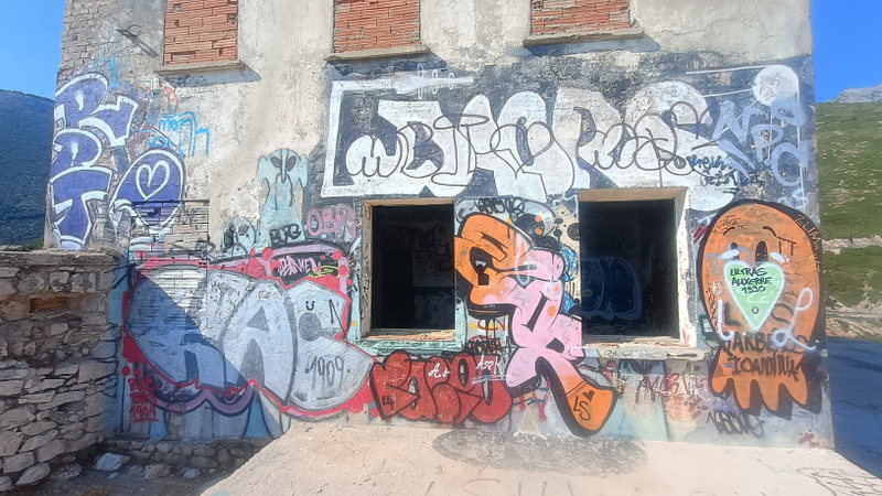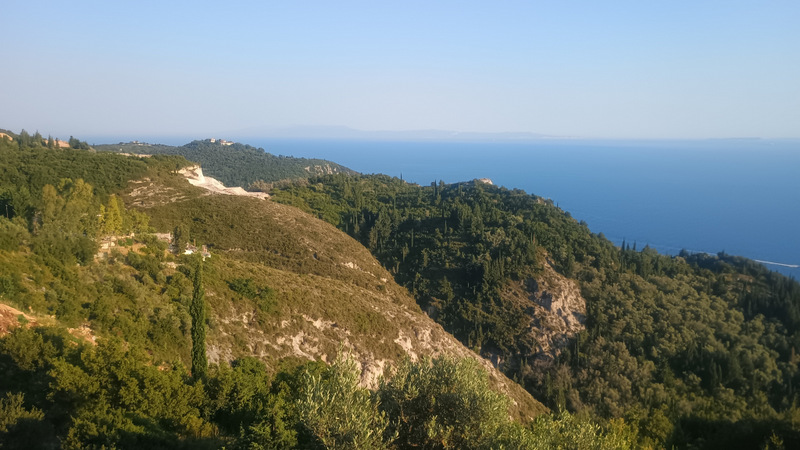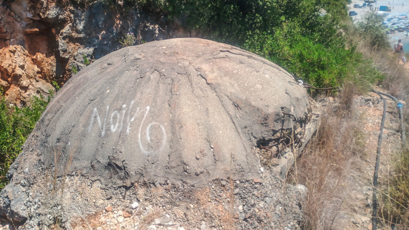 Pe drum trecem de un bunker aflat într-o stare deplorabilă. Nu oprim acum, ci undeva mai sus unde este amenajat un loc de belvedere mare. Panorama e splendidă cu ape, culori și munții din Insula Corfu undeva departe.