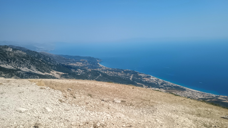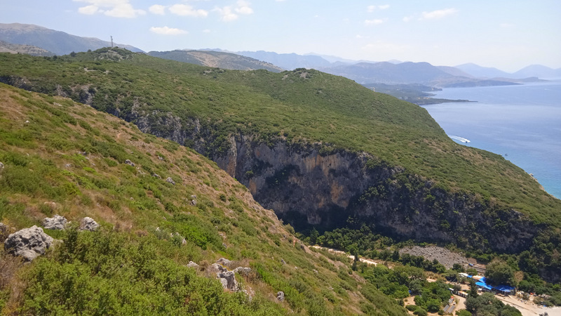 Mai facem o pauză la bunkerul de care vorbeam mai sus. Aici e multă mizerie, doar panorama compensează asta. Și începem coborîrea cu gîndul de a face baie pe plaja Dhermi.