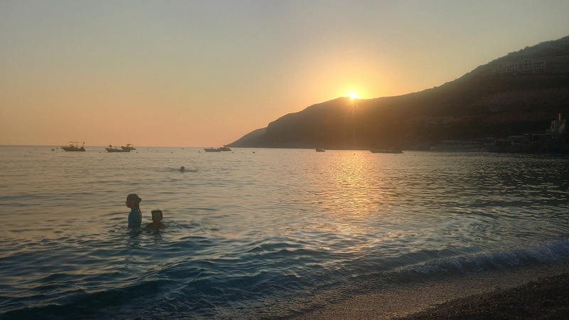 Plaja din Jalë e mai pe gustul nostru. Mică, liniștită, cu apă numai bună ca temperatură. Am stat aici pînă la apusul soarelui.