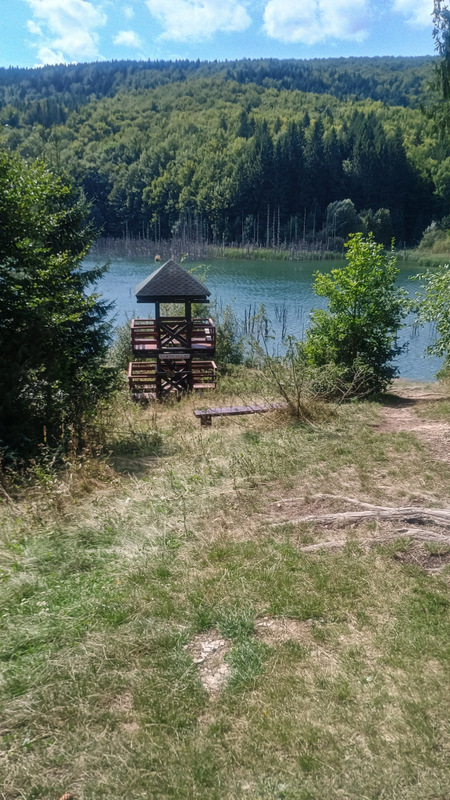 Deocamdată mai avem de mers pînă în coada lacului. Acolo putem traversa și pîrîul ce alimentează lacul. O luăm prin pădure și astfel ajungem într-un drum forestier. Domnul Stoica îmi spune că mai există un foișor la coada lacului și avem de mers doar vreo 5 minute pînă la el.