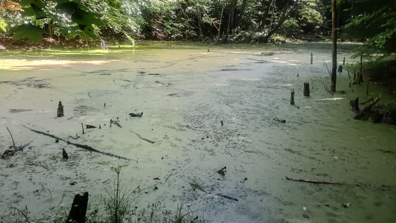 De aici poteca devine noroioasă și trebuie mers cu destulă băgare de seamă. Sunt nenumărate zone de belvedere, unele mai sus, pe mal, altele direct lîngă apă. Ne oprim într-un loc ca să studiem și malul opus. Acolo există un foișor mare, din bîrne de lemn. Vom ajunge și acolo.