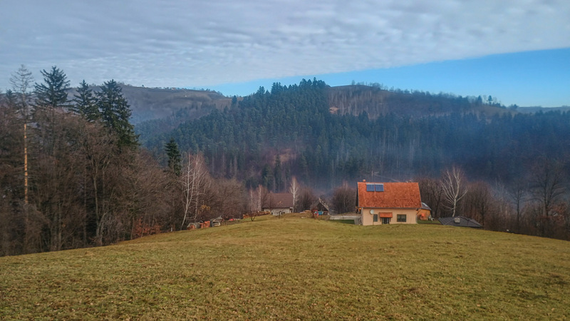 Drumul deocamdată ține valea dar numai pînă iese din sat. Apoi trebuie să cotim la stînga pe un drum care urcă abrupt. Asta ne pune sîngele în mișcare. Partea bună este că ajungem destul de repede deaupra satului. Vremea arată destul de bine.