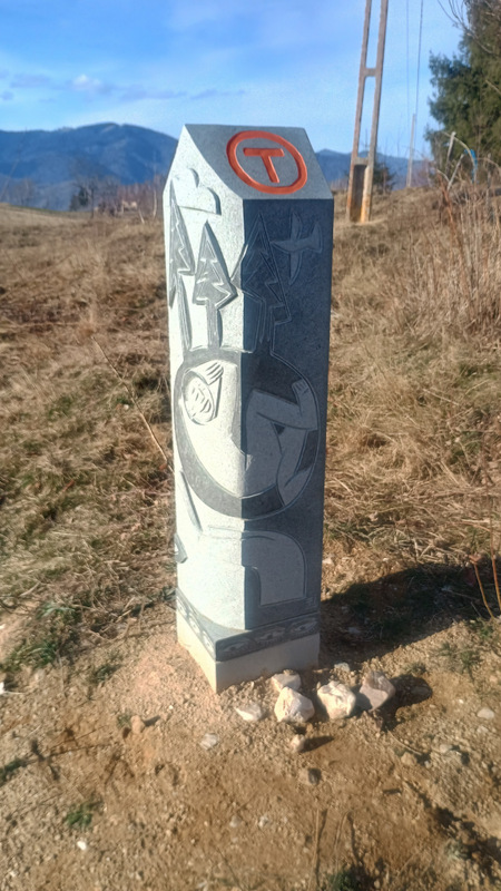Cu grijă, atenție și îngrijorare scăpăm curați în cele din urmă așa că ne facem intrarea în Zărnești în cele mai bune condiții. Marcajul ne poartă pe cîteva străduțe și ne poartă în centrul orașului. Aici salutăm veverița sculptată pe ultima bornă întîlnită astăzi pe traseu.